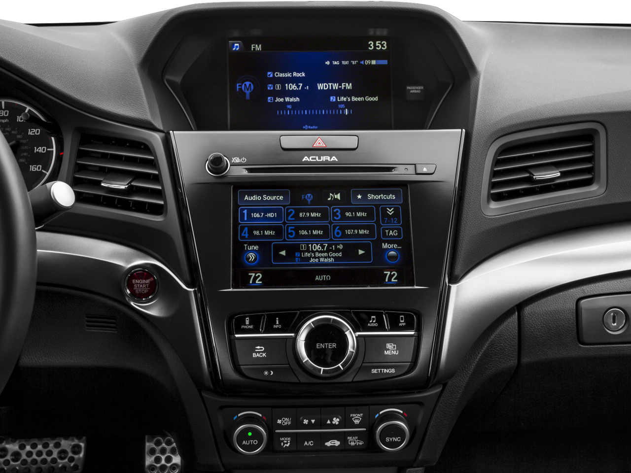 - Radio: Acura Premium Audio System -inc: 7 speakers, Siri Eyes Free, SMS/MMS text message and email capability, Bluetooth® HandsFreeLink wireless telephone interface, Pandora compatibility, USB audio interface w/iPod integration, Bluetooth® streaming audio, MP3/auxiliary input jack and Speed-Sensitive Volume Compensation (SVC), iPhone AcuraLink navigation app connectivity, On Demand Multi-Use Display (ODMD), Aha compatibility, HD Radio and SiriusXM satellite radio