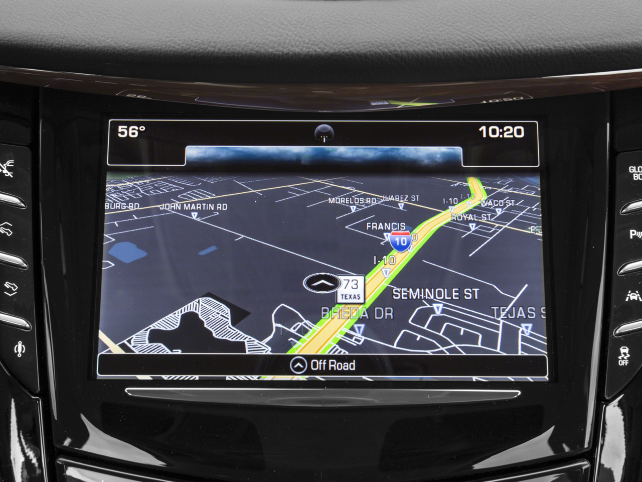 - Cadillac CUE Information and Media Control System with Embedded Navigation 8" diagonal color information display featuring touch response, haptic feedback, gesture recognition, Natural Voice Recognition and Phone Integration for Apple CarPlay capability for compatible phone. Five USB ports, including one in the articulating storage door/bin and auxiliary audio port