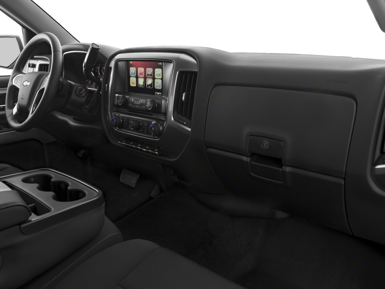 • Seats, front 40/20/40 split-bench, 3-passenger, available in cloth or leather includes driver and front passenger recline with outboard head restraints and center fold-down armrest with storage. Also includes manually adjustable driver lumbar, lockable storage compartment in seat cushion, and storage pockets. (Leather with (KA1) heated seat cushions and seat backs is an available extra charge option with (H1Y) Jet Black leather appointed interior trim and requires (PCM) LT Convenience Package, (PDA) Texas Edition or (PDU) All Star Edition. (Leather with (KA1) heated seat cushions and seat backs is an available extra charge option with (H1Y) Jet Black leather appointed interior trim and requires (PCY) LT Fleet Convenience Package, (PDA) Texas Edition or (PDU) All Star Edition. Includes (AG1) driver 10-way power seat-adjuster with (PCM) LT Convenience Package, (PDA) Texas Edition or (PDU) All Star Edition. Includes (AG1) driver 10-way power seat-adjuster with (PCY) LT Fleet Convenience Package, (PDA) Texas Edition or (PDU) All Star Edition. When (G1K) Deep Ocean Blue Metallic or (GPA) Graphite Metallic exterior color is ordered on C*1**53 Double Cab models, requires (H0U) Jet Black cloth interior.)