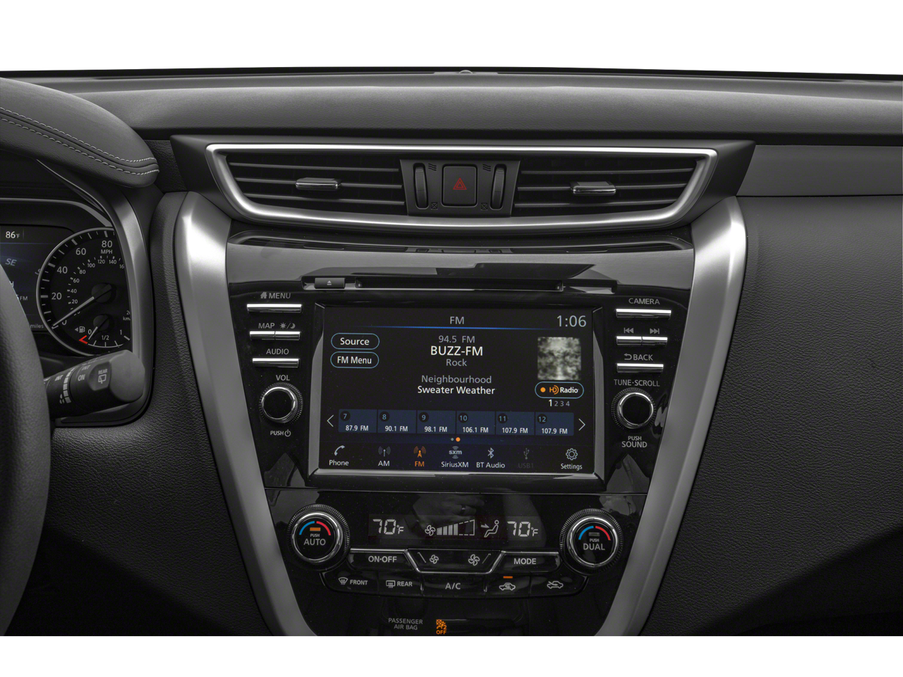 - Radio: AM/FM/CD/MP3/WMA Audio System -inc: Bose audio system w/11 speakers plus dual subwoofer, NissanConnect powered by SiriusXM (automatic collision notification, emergency call and stolen vehicle locator, remote services including start/stop, lock/unlock, flash lights, sound horn, customizable alerts including drive zone, valet, curfew and speed alerts, dealer service scheduling and maintenance alerts), Nissan door to door navigation w/3D building graphics and satellite imagery, connected navigation features including online POI search, door-to-door and online premium traffic information, HD Radio, SiriusXM Travel Link (weather, fuel prices, movie listings, stock info, sports and parking), SiriusXM Traffic, auxiliary audio input jack, SiriusXM satellite radio, 8" color display w/multi-touch control, 2 front illuminated USB connection ports (1 type-A, 1 type-C) for iPod interface and other compatible devices, Bluetooth® hands-free phone system, streaming audio via Bluetooth®, hands-free text-messaging assistant and 2 rear illuminated USB charge ports (1 type-A, 1 type-C)