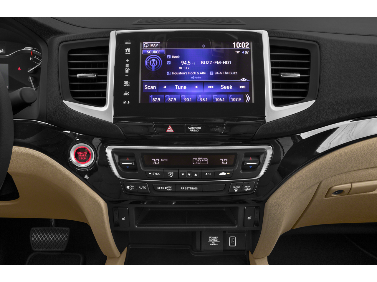 - Radio: AM/FM/MP3 w/Nav System & Truck-Bed Audio -inc: 540-watt premium audio system, 8" display audio w/high-resolution electrostatic touch-screen and customizable feature settings, 8 speakers including subwoofer, Bluetooth® streaming audio, auxiliary input jack, Radio Data System (RDS), speed-sensitive volume compensation (SVC), Apple CarPlay, Android Auto, HondaLink, SMS text message function, 1.5-amp USB smartphone/audio interface, 2.5-amp USB charging port and HD Radio