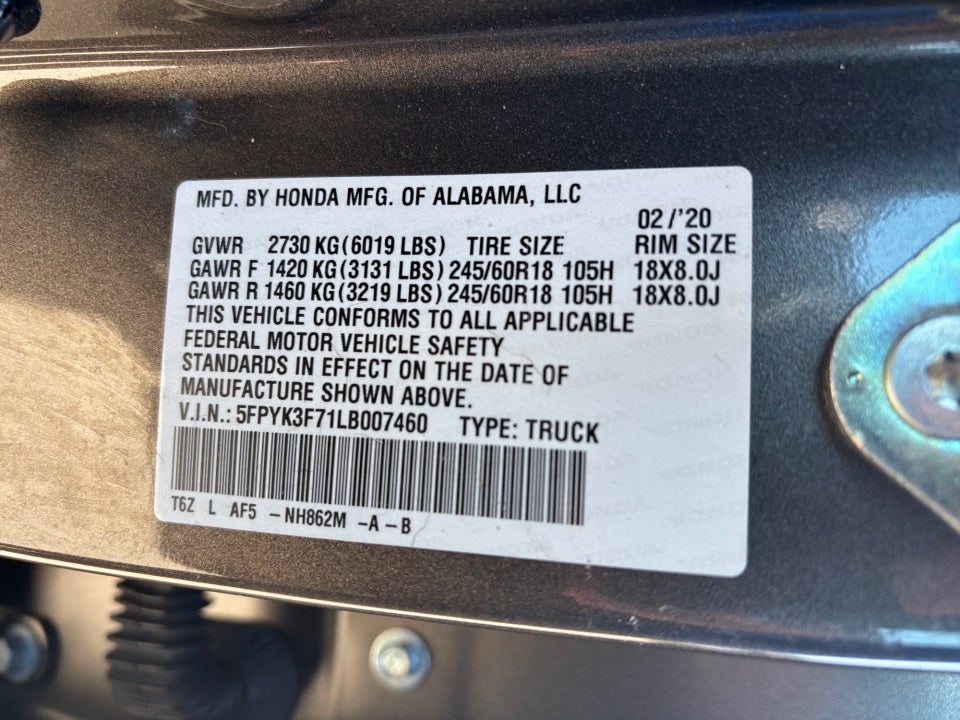 FLOW CERTIFIED! 2YR/100 000 MILE WARRANTY with $300 deductible and a free maintenance package on this 2020 Honda RidgelinePacific Pewter Metallic RTL-E! **