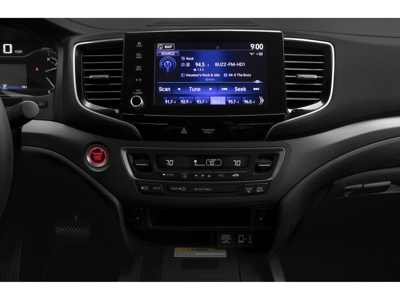 - Radio: AM/FM/MP3 Premium Audio System -inc: 540-watt, 8" display audio w/high-resolution electrostatic touch-screen and customizable feature settings, 8 speakers including subwoofer, Bluetooth® streaming audio, auxiliary input jack, Radio Data System (RDS), speed-sensitive volume compensation (SVC), Apple CarPlay, Android Auto, HondaLink, SMS text message function, 1.5-amp USB smartphone/audio interface, 3 2.5-amp USB charging ports, HD Radio, navigation system, truck-bed audio and wireless phone charger