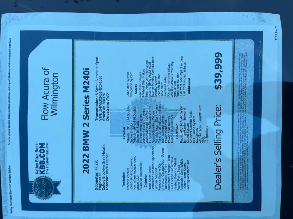 Flow Acura of Wilmington is excited to offer this charming 2022 BMW 2 Series Brooklyn Gray Metallic M240i with the following features:
