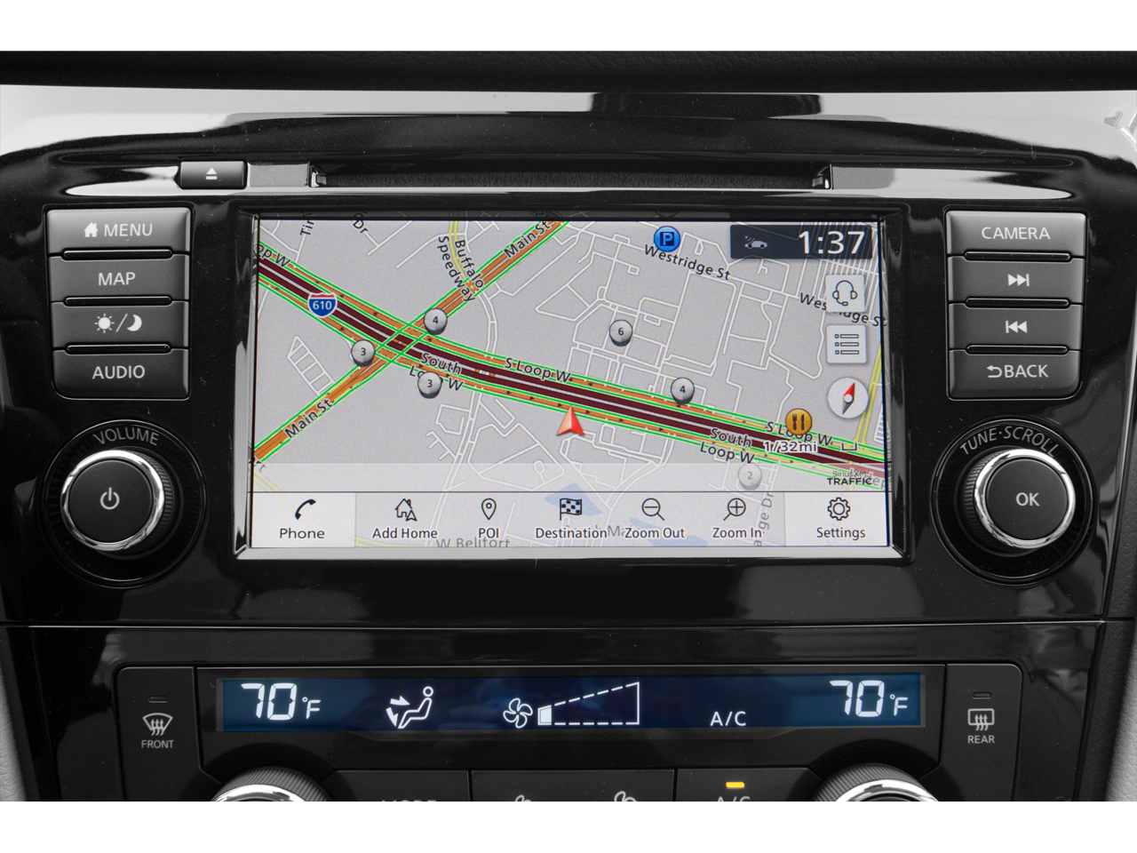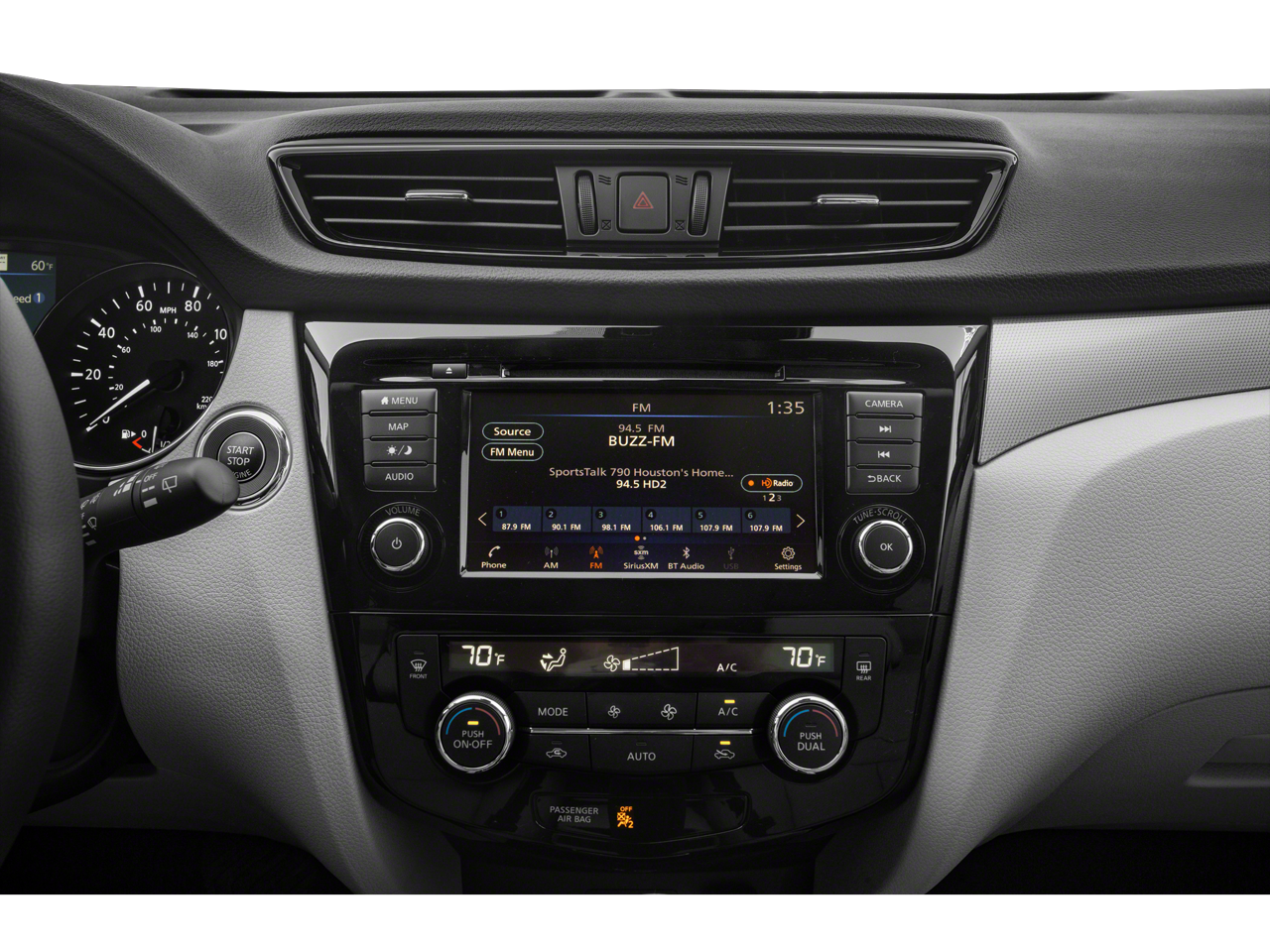 - Radio: AM/FM NissanConnect w/Navigation -inc: Nissan door-to-door navigation, SiriusXM Traffic, SiriusXM Travel Link, 7" color touch-screen display w/multi-touch control, Apple CarPlay, Android Auto, SiriusXM satellite radio, Bluetooth® hands-free phone system, streaming audio via Bluetooth® and hands-free text messaging assistant