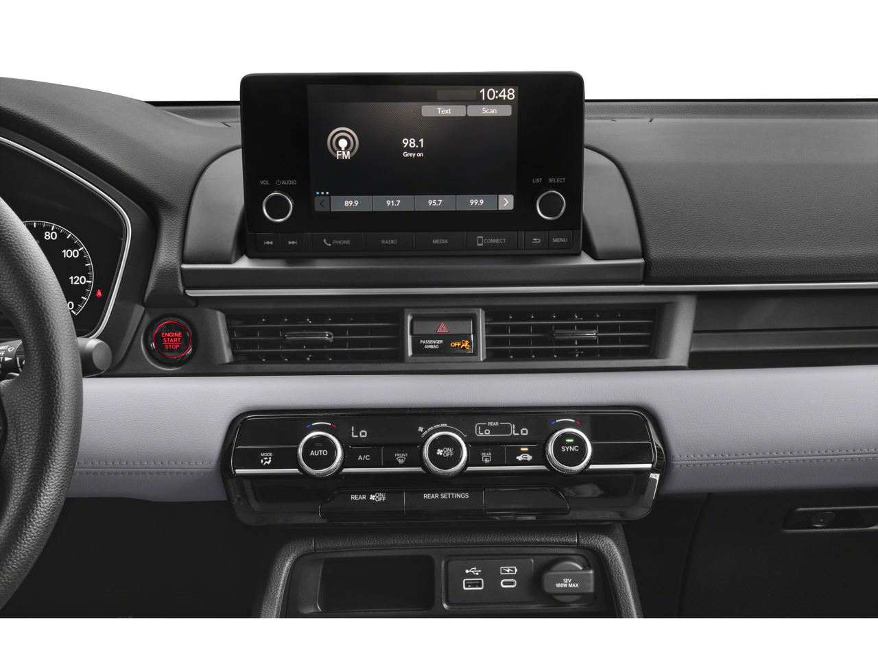 - Radio: 240-Watt Audio System -inc: 7 speakers w/subwoofer, 7" color touchscreen, Bluetooth® HandsFreeLink and streaming audio, Radio Data System (RDS), Speed-sensitive Volume Compensation (SVC), front 12-volt power outlet, Apple CarPlay and Android Auto compatibility, SMS text message function, 2.5-amp USB type-A smartphone/audio interface port in front console and 3.0-amp USB type-C charging port in front console