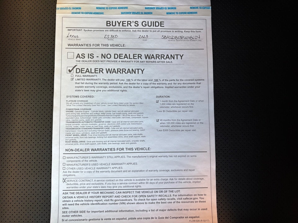 - Vehicle Name: Lexus ES