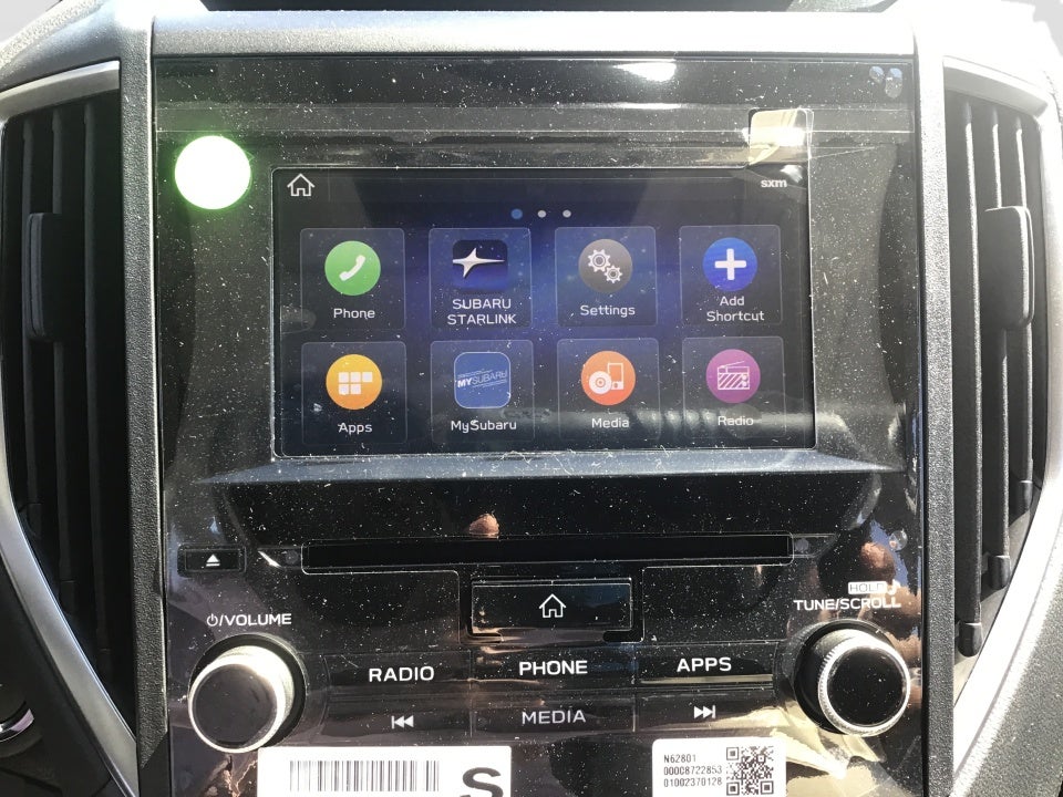 - Radio: Subaru STARLINK 6.5" Multimedia Plus System -inc: AM/FM stereo, HD Radio, single disc CD player w/MP3/WMA/CRR/RW file capability, multi-touch gesture high resolution display screen, voice activated controls, Bluetooth® audio streaming and hands-free phone connectivity, Bluetooth® hands-free SMS text messaging connectivity, iPod control capability, rear-vision camera display, SiriusXM All Access radio (4 months free trial/subscription required after), SiriusXM Travel Link (4 months free trial/subscription required after), smartphone integration: AHA, Android Auto, Apple CarPlay, Pandora, STARLINK cloud applications, 6 speakers, 3.5mm auxiliary input jack, dual USB A input charge ports, roof mounted antenna and audio/satellite connected services