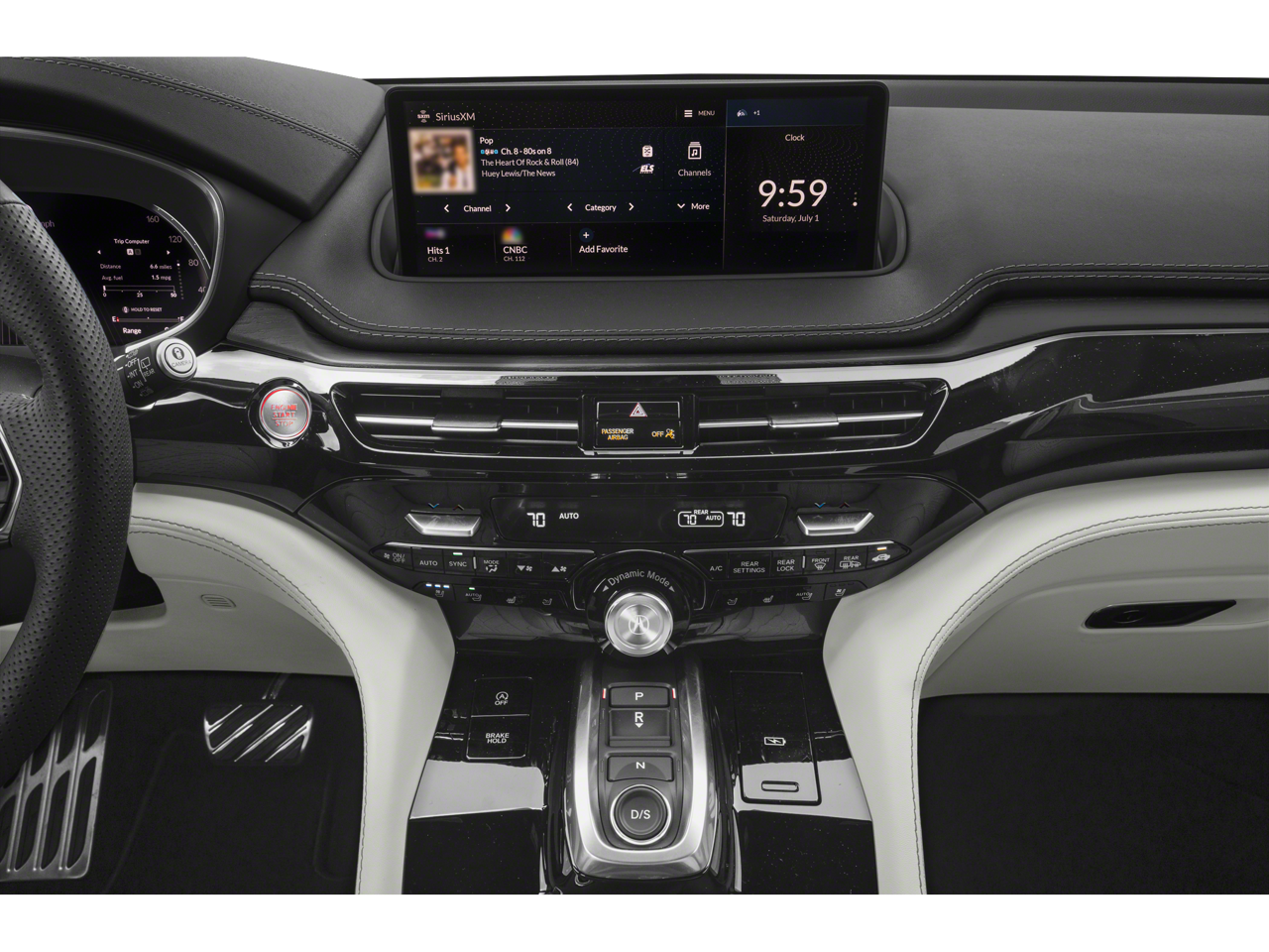 • Radio: ELS Studio 3D Signature Ed Prem Aud System -inc: 25-speakers, 12.3" HD dual-content center display w/True Touch Interface, Wi-Fi hotspot capability, Acura navigation system w/3D view, AcuraLink Real-Time Traffic w/street and freeway conditions, Traffic Rerouting, natural language voice recognition, AcuraLink connected services, AcuraLink security and remote services (3 years), wireless Apple CarPlay and Android Auto integration, Alexa built-in, Bluetooth® HandsFreeLink wireless telephone interface, HD Radio, SiriusXM (SiriusXM requires a subscription after any trial period, If you decide to continue you SiriusXM service at the end of your trial subscription, the plan you choose will automatically renew and bill at then-current rates until you call SiriusXM at 1-866-635-2349 to cancel, See our customer agreement for complete terms at www.siriusxm.com, Fees and programming subject to change, Available in the 48 contiguous United States and D.C.), USB audio interface, Bluetooth® streaming audio and Speed-Sensitive Volume Compensation (SVC)