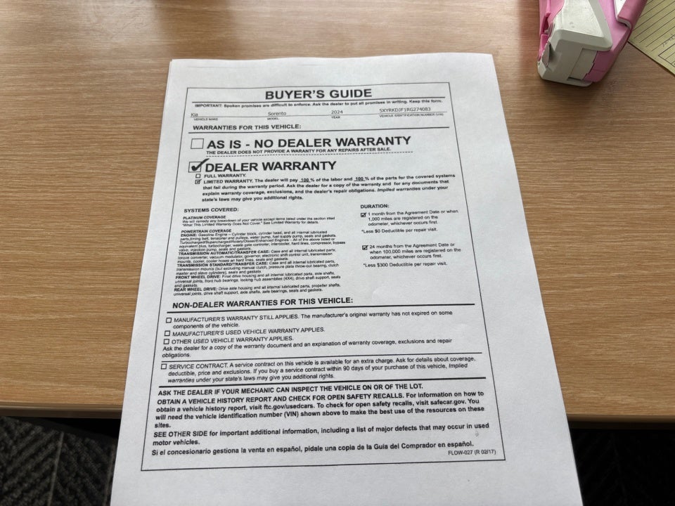 - Vehicle Name: Kia Sorento