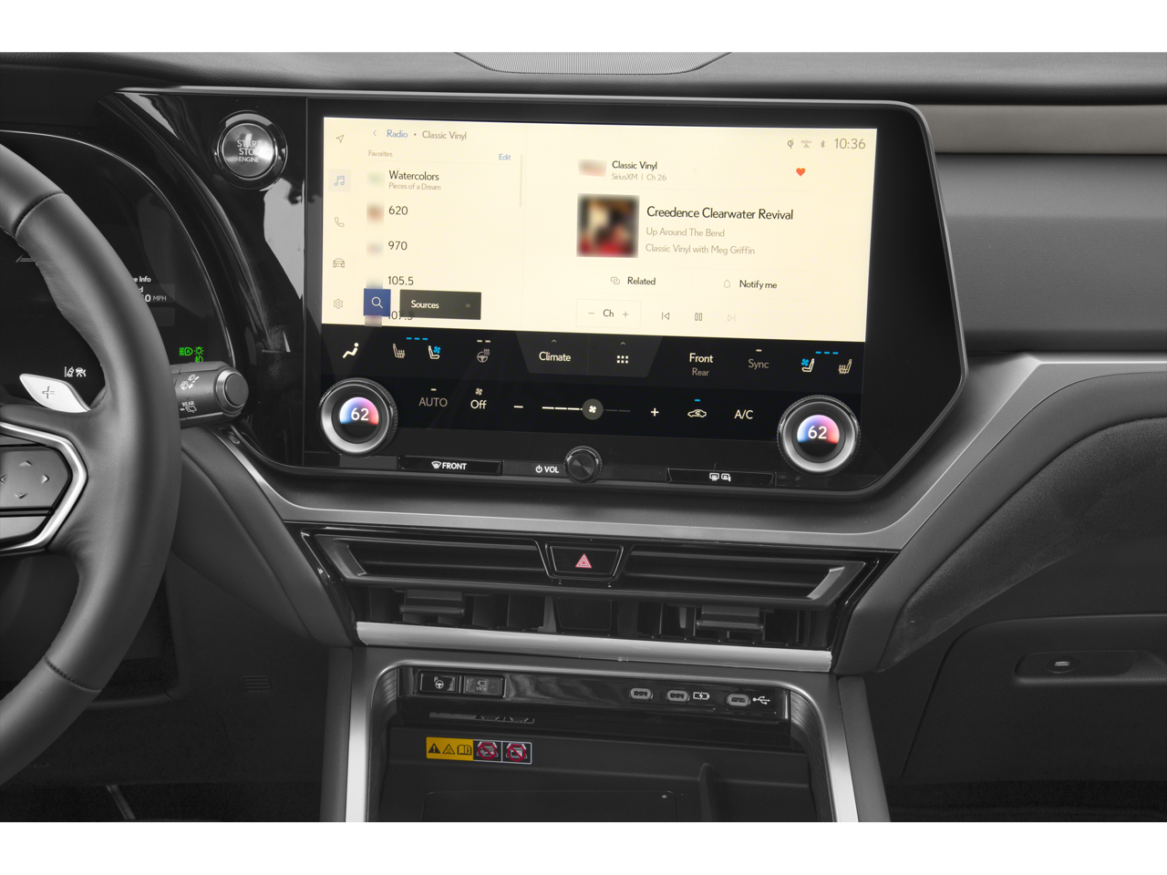 - Radio: Lexus Interface -inc: 12 speakers, 14 inch touchscreen display, Safety Connect and Service Connect w/up to 10-year trial, Remote Connect 3-year trial, Wi-Fi Connect (AT&T hotspot) w/up to 30-day/3GB trial, Drive Connect w/cloud navigation, Intelligent Assistant and Destination Assist 3-year trial, wireless Apple CarPlay integration and wireless Android Auto compatibility