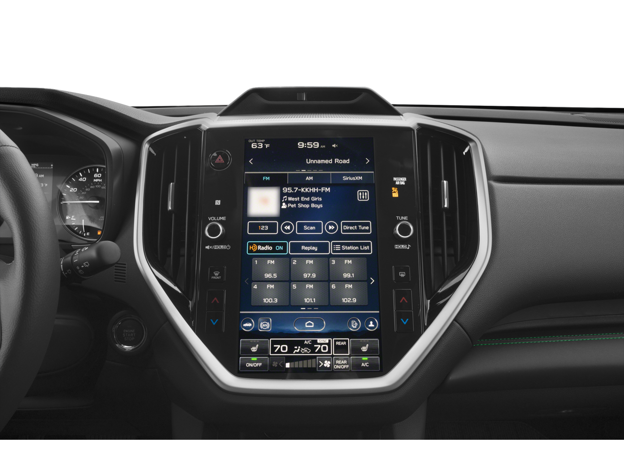 - Radio: Subaru 11.6" Multimedia System w/Navigation -inc: AM/FM stereo HD Radio, multi-touch gesture high resolution display screen, voice activated controls for radio and navigation, Bluetooth® audio streaming and hands-free phone connectivity w/SMS text messaging connectivity (refer to subaru.com for cell phone compatibility), Near Field Communication (NFC), TomTom navigation software w/what3words, iPod control capability, smartphone integration for Android Auto and Apple CarPlay w/full screen view and wireless connection, USB audio system update, TomTom navigation system update w/USB/Map Over The Air (MOTA) (3 years free map updates), steering wheel control switches for audio and Bluetooth®, harman/kardon quantum logic surround sound speaker system w/14 speakers, subwoofer and harman/kardon 792 watt equivalent maximum output amplifier, 3.5mm illuminated auxiliary input jack, illuminated USB A and C input/charge ports, SiriusXM w/360L (4 months free trial included/subscription required after), SiriusXM Travel Link (4 months free trial included/subscription required after) and SiriusXM Traffic (3 years free trial included/subscription required after)