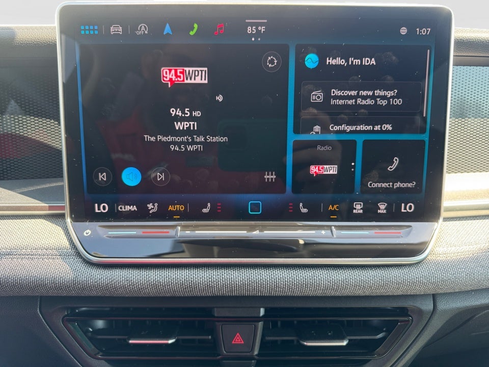 - Radio: MIB4 Composition Media Touchscreen AM/FM -inc: WMA/MP3/FLAC player w/USB, 12.9" touchscreen multi-function center display w/backlit sliders, 6 speakers + center speaker (7 speakers total) sound system, capability for in-vehicle 4G LTE enabled Wi-Fi (cellular data plan required; includes limited trial), capability for VW Car-Net services (capabilities for services vary; requires enrollment or subscription), Bluetooth® connectivity (for compatible devices), SiriusXM w/360L (w/3-month free trial subscription; 360L services require acceptance of Car-Net terms), App-Connect smartphone integration (w/Apple CarPlay, Android Auto and MirrorLink) via USB, wireless App-Connect smartphone integration (for compatible devices) w/multi-phone pairing capability, 45W fast charging (for compatible mobile phones and accessories) via USB in both rows and Qi wireless inductive charger, cooled, up to 15W (for compatible mobile phones and accessories)