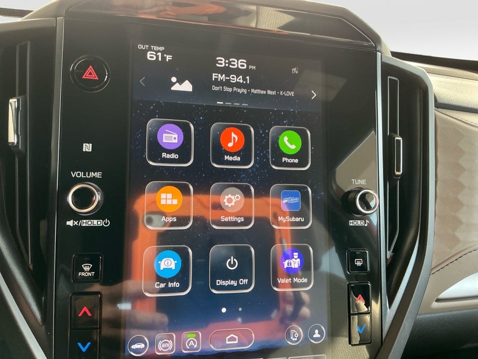 - Radio: Subaru 11.6" Multimedia Plus System -inc: valet mode, integrated center information display, AM/FM stereo HD Radio, multi-touch gesture high resolution display screen, voice activated controls, Bluetooth® audio streaming and hands-free phone connectivity w/SMS text messaging (refer to Subaru.com for cellphone compatibility), iPod control capability, smartphone integration: Android Auto and Apple CarPlay w/full screen view and wireless connection, SiriusXM satellite radio w/360L (free 4-month trial subscription included), USB and Over The Air (OTA) audio system update, steering wheel controls, 6 speakers, 3.5mm auxiliary input jack and roof mounted audio and satellite antenna